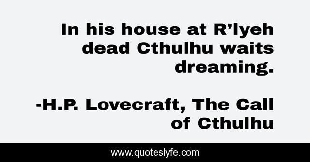 I shall never sleep calmly again when i think of the horrors that lurk ceaselessly behind life in time and in space and of those unhallowed blasphemies from elder stars which dream beneath the sea known and favoured by a nightmare cult ready and eager to loose them upon the world whenever another earthquake shall heave their. The call of cthulhu quotes. 27 quotes have been tagged as cthulhu.